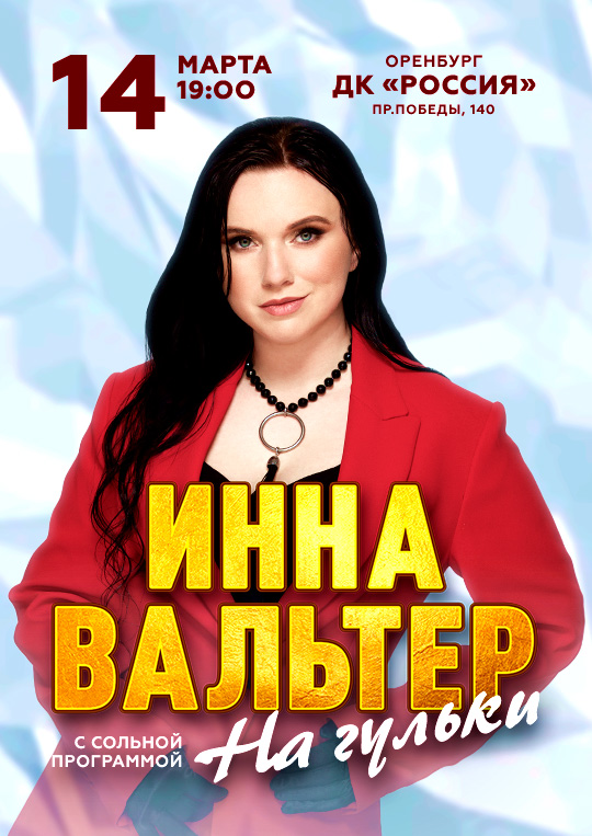 Купить билеты без комиссии и без сервсисного сбора на концерт Инны Вальтер в Оренбурге можно на OKKASSA.RU