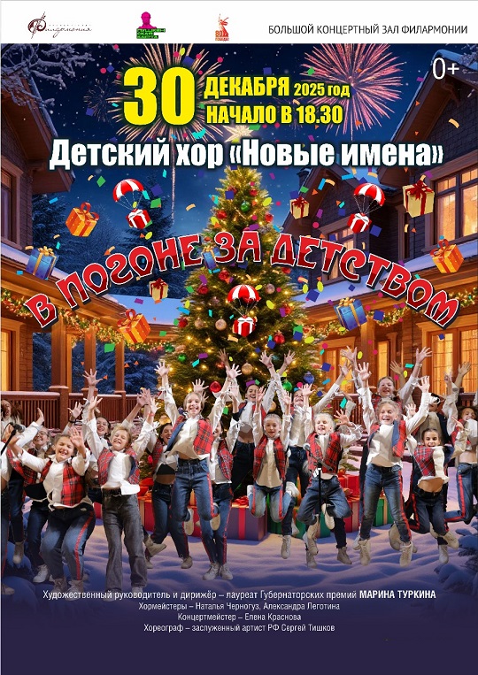 30 декабря в Большом концртном зале филармонии состоится новогодний концерт «В погоне за детством» лауреата международных конкурсов детского хора «Новые имена».