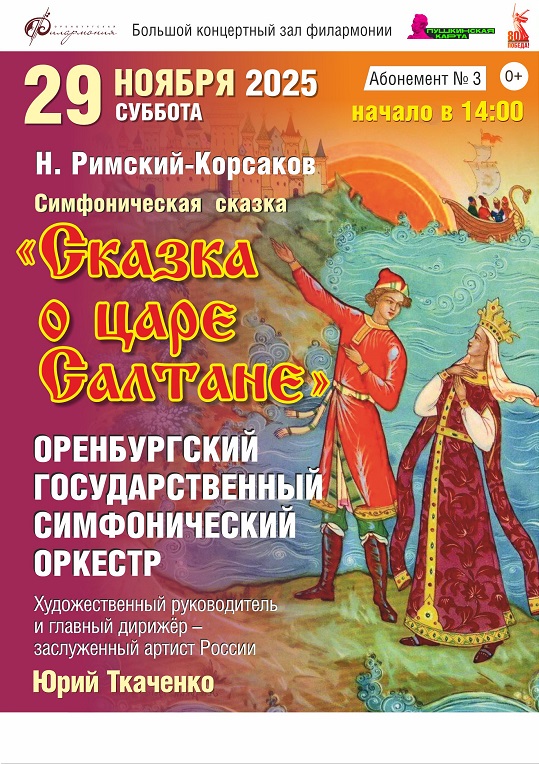 29 ноября Оренбургская филармония приглашает юных зрителей на симфоническую сказку о царе Салтане в исполнении Оренбургского государственного симфонического оркестра.