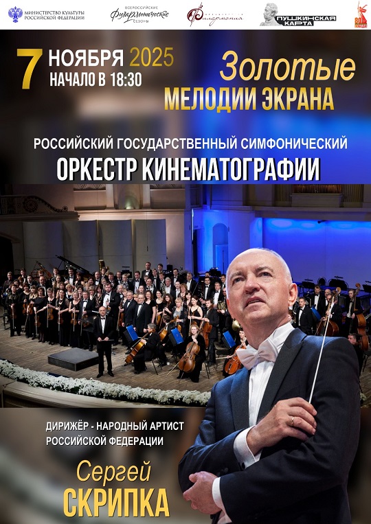 7 ноября на сцене Большого концертного зала филармонии выступит Российский государственный симфонический оркестр кинематографии, дирижер - народный артист РФ Сергей Скрипка.