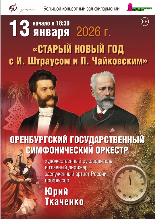 13 января в Большом концертном зале филармонии состоится концерт Оренбургского государственного симфонического оркестра "Старый новый год с И.Штраусом и П.Чайковским".